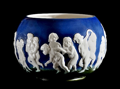 Waza z dziećmi i faunami igrającymi z koziołkami, ceramika wielobarwna glazurowana, 1936 r.